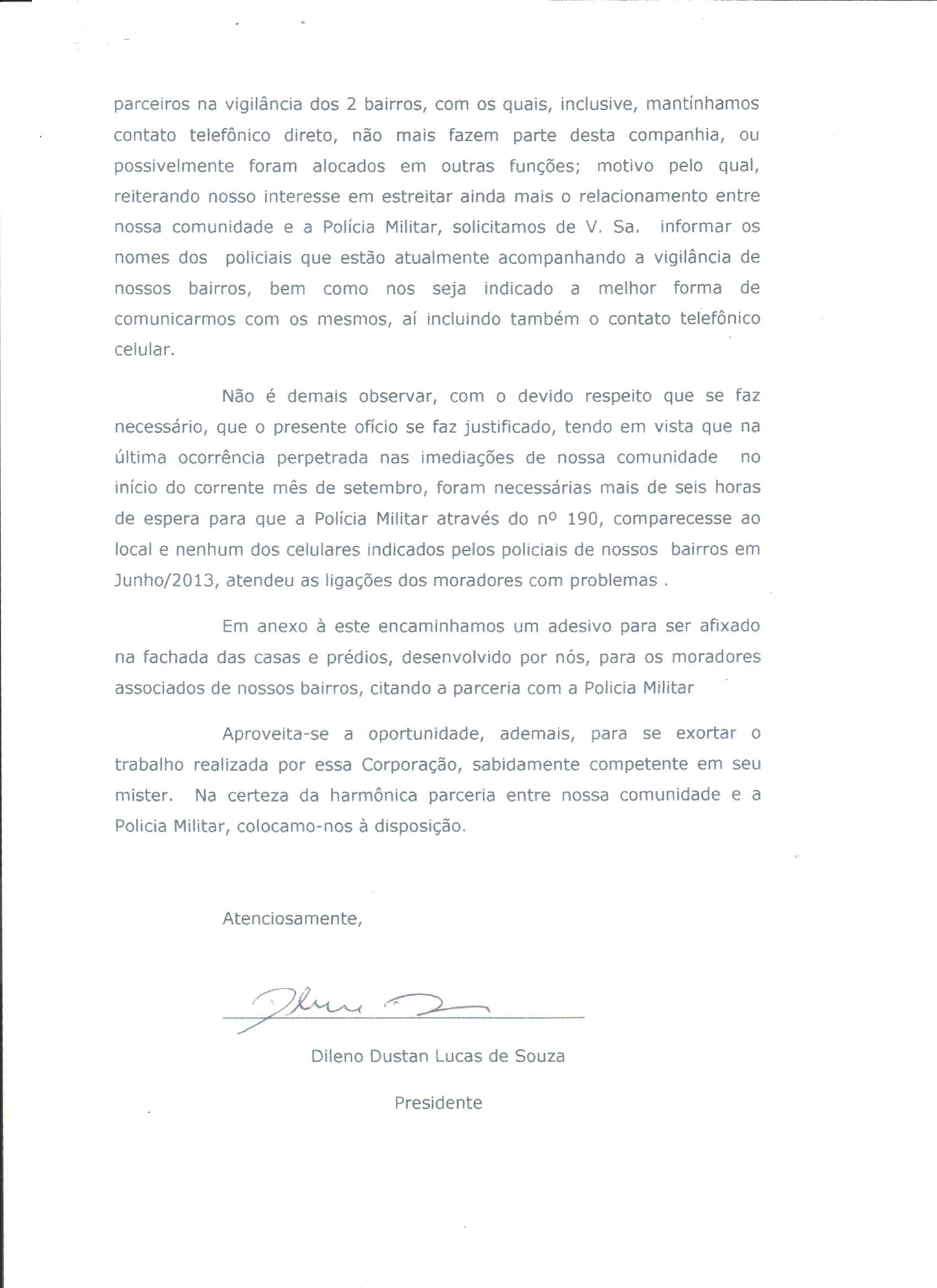 Nome Telefone Site Bombeiros/Resgate 193 www.bombeiros.mg.gov.br Cemig 116 www.cemig.com.br Cesama 115 www.cesama.com.br Correios 08007257282/08007250100 Defesa Civil 199 Alô Fiscalização 36907100 Demlurb 36903502 Concer 08002820040 Disque Empav 32168000 Doação de Órgãos 32224700 HPS 36908200 Polícia Militar 190 www.pmmg.mg.gov.br Policiais que atuam em nossos bairros Tenente Gilmar - 991346751(Tim); 999491949(Vivo); 988939121(Oi) - Observem os ofícios que fora encaminhado ao Comando da 32ª Companhia da polícia Militar, visando restabelecer e renovar nossos contatos. Em decorrência de tal empreendimento nos foi informado que a partir daquela data a ligação com a Companhia seria através do Tenente Gilmar, que além do contato pessoal, nos passou os novos telefones.![]()